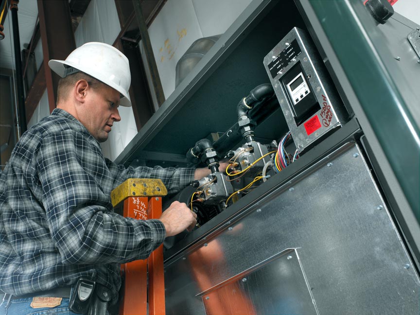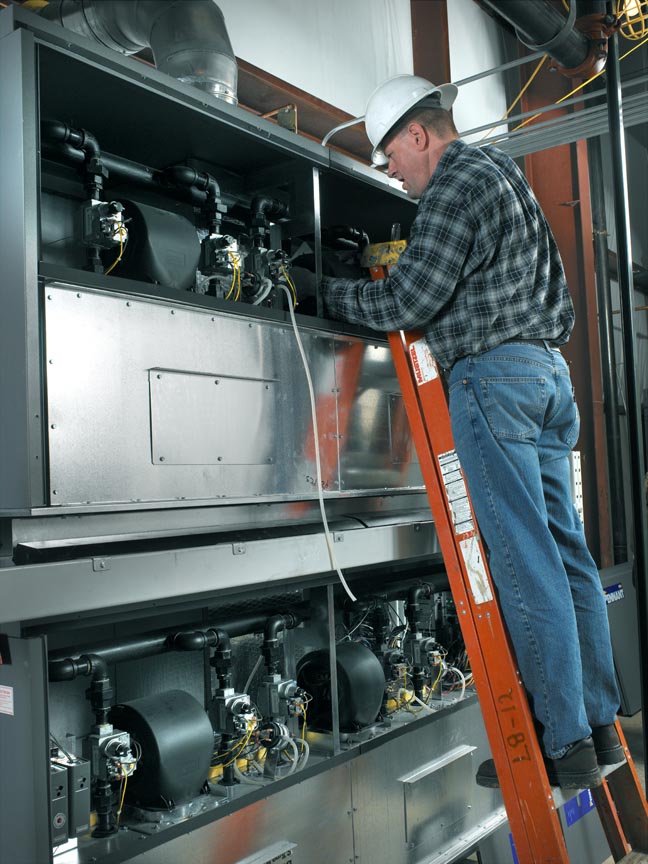 The stacked system design offers balanced airflow to each of the boiler's four firing stages. This permits each unit to continue operation without having to shut down the entire boiler system. It serves as a greatly simplified lead-lag heat source, if an ignition system of one unit should ever fail, the other takes over and maintains heat to the system.
