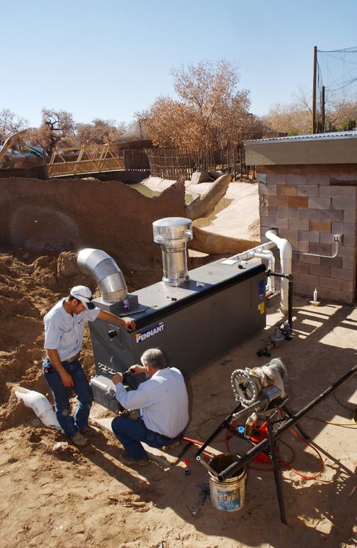 Founded in 1927, the 64-acre Rio Grande Zoo, located in Albuquerque, New Mexico, is a facility of the Albuquerque Biological Park. One of the favorite visitor attractions is the hippo pool, which is viewed by thousands of visitors every weekend. Hippo's need their pool for both heating and cooling themselves. If the water is kept at a consistent temperature, then the hippo's are quite active and social. So keeping the temperature of the large hippo pool's water consistant, is of vital importance.