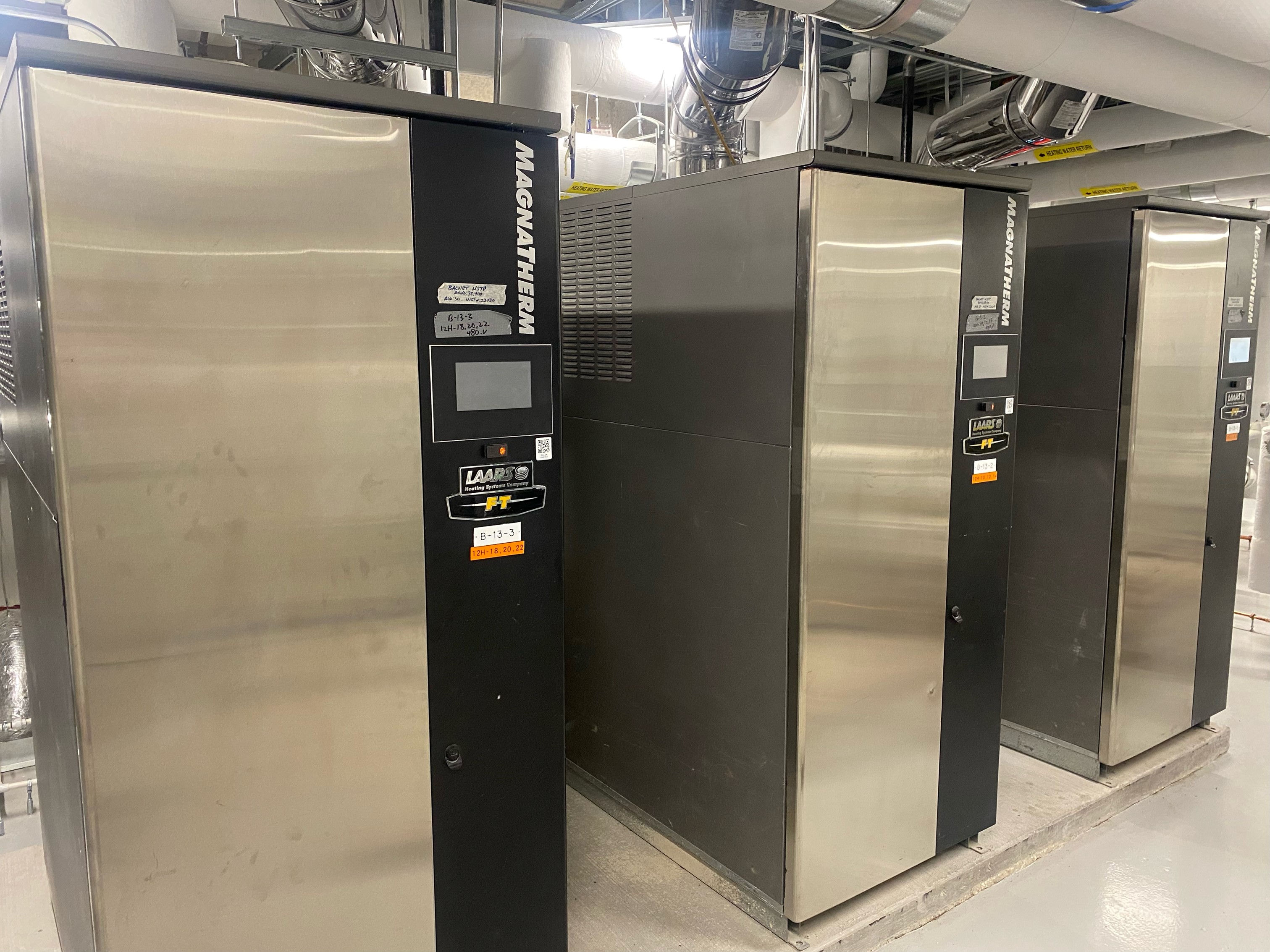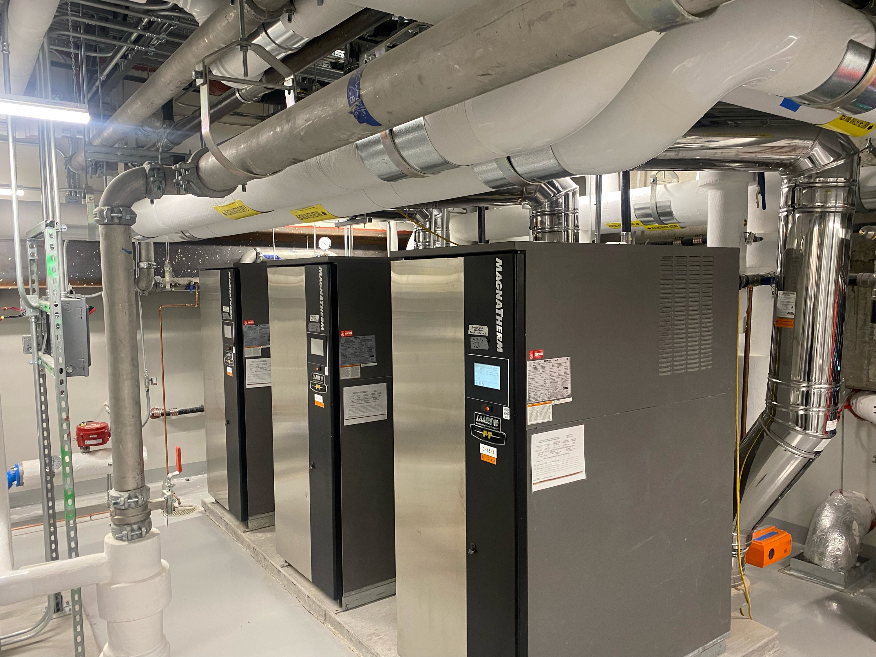 The 267 guest rooms along with 20,000 square feet of meeting space, all built on top of an existing 10-story parking garage, are being kept comfortable with three 3000 MBH MagnaTherm FT boilers. The MagnaTherm FT boilers are supplying hot water for heating to the common-space air handlers as well as to a set of two plate and frame heat exchangers that supply domestic hot water to the common spaces and hotel.