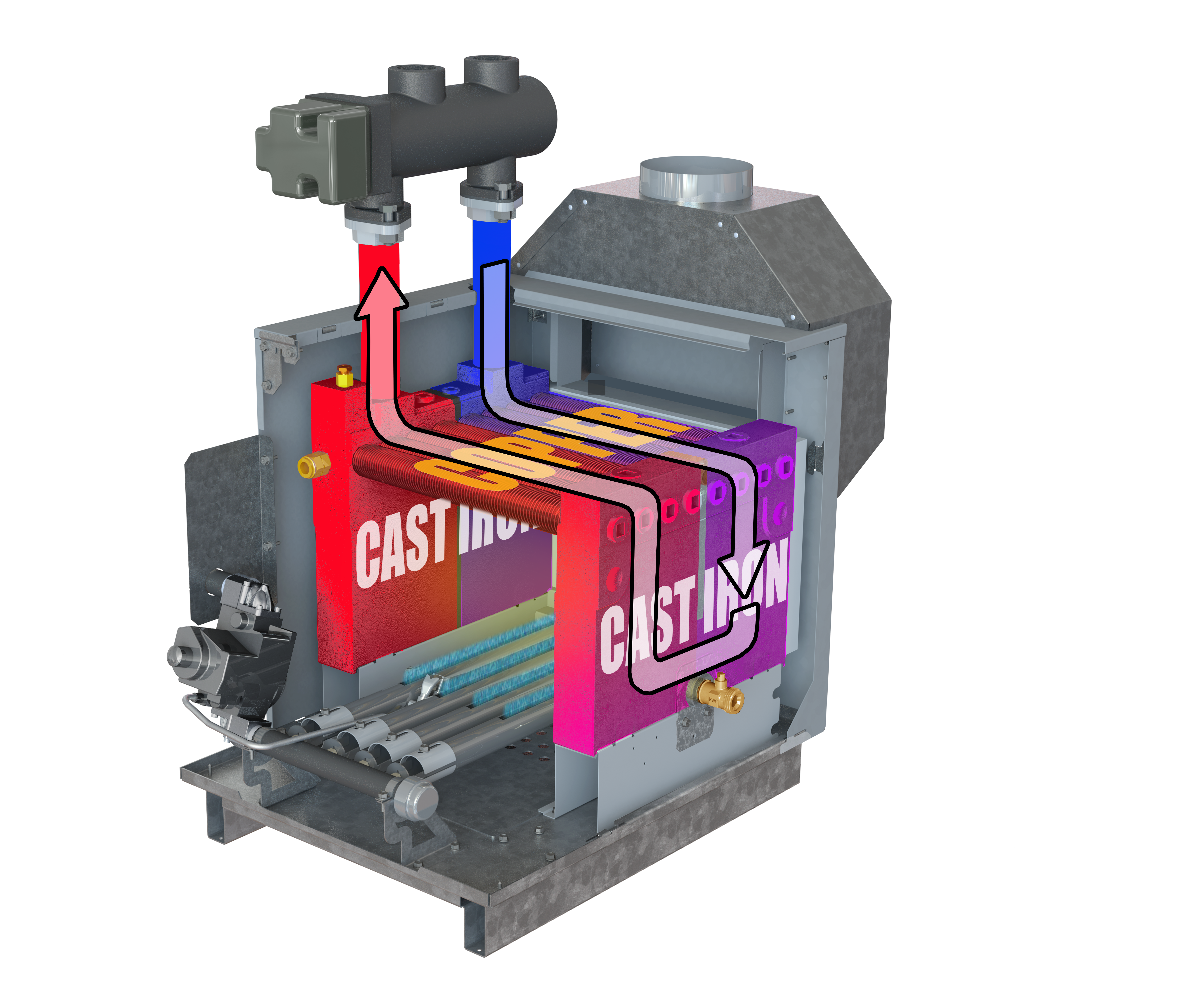 The Mini-Therm JX has a unique, field-proven heat exchanger design that intelligently combines finned copper tubing with cast iron "wet walls" to create a perfect balance of quick heat transfer and stored heat.